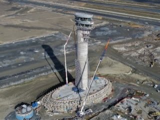Vinçler yardımı ile kulenin etrafında çalışma yapan işçiler kaba inşaatın büyük bir bölümünü bitirdiği görülüyor. Çatısı tamamlanan Hava Trafik Kontrol Kulesi'nin en üst katındaki bazı pencerelerinde takıldığı görüldü. 3,5- 4 kilometre uzunluğuna sahip pistlerin son durumu havadan çekilen görüntülerde gözler önüne serildi. İnşaatta çalışan araçlar pistlerin az kullanmaları için belirtilen güzergah havadan çekilen görüntülerde görülüyor.