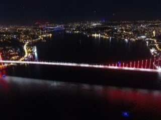 Gece havadan görüntülenen köprüler kırmızı ışıkları ile oluşturdukları manzara kartpostallık görüntüler oluşturdu.