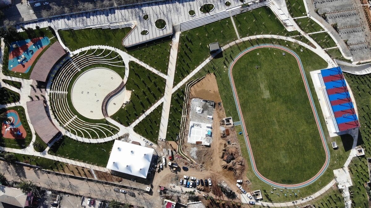 Çevre ve Şehircilik Bakanlığı tarafından 62 dönümlük alanda inşası devam eden millet bahçesinde Türkiye’deki diğer millet bahçelerinde olmayan futbol sahası ve tribün olacak.