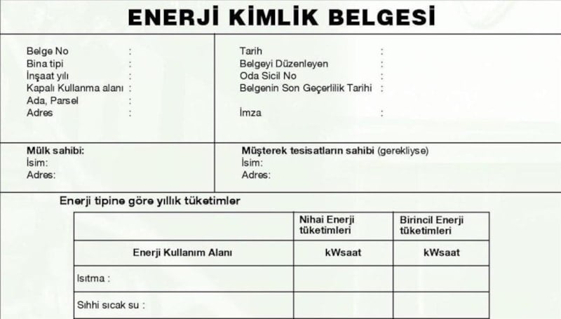 Çevre, Şehircilik ve İklim Değişikliği Bakanlığı'nın hayata geçirdiği Enerji Kimlik Belgesi ile binaların enerji tüketimleri ve sera gazı emisyonları A, B, C, D, E, F ve G olarak değişen referans ölçeğine göre sınıflandırılarak gösteriliyor. A sınıfı en verimli, G sınıfı ise en düşük verimli seviyeyi belirtiyor.