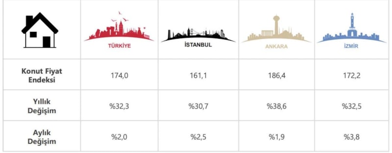 Ankara ve İzmir'le karşılaştırıldığında İstanbul'da konut fiyatlarının artış hızı daha düşük kaldı.