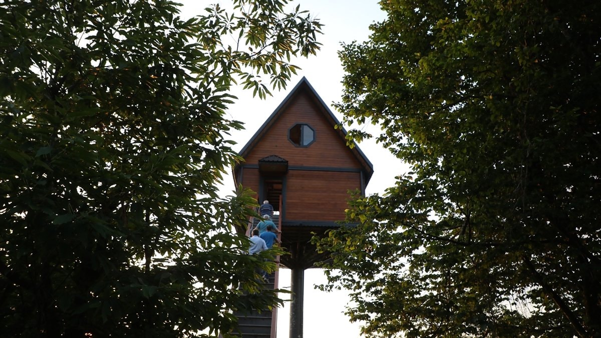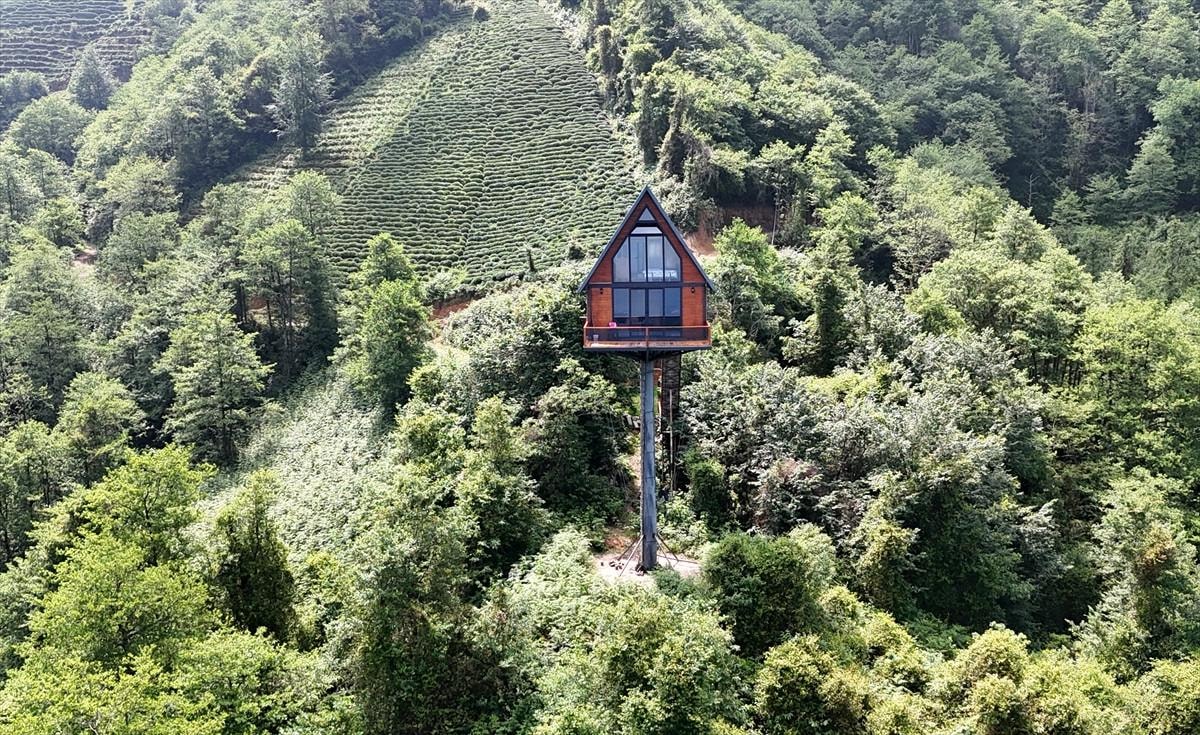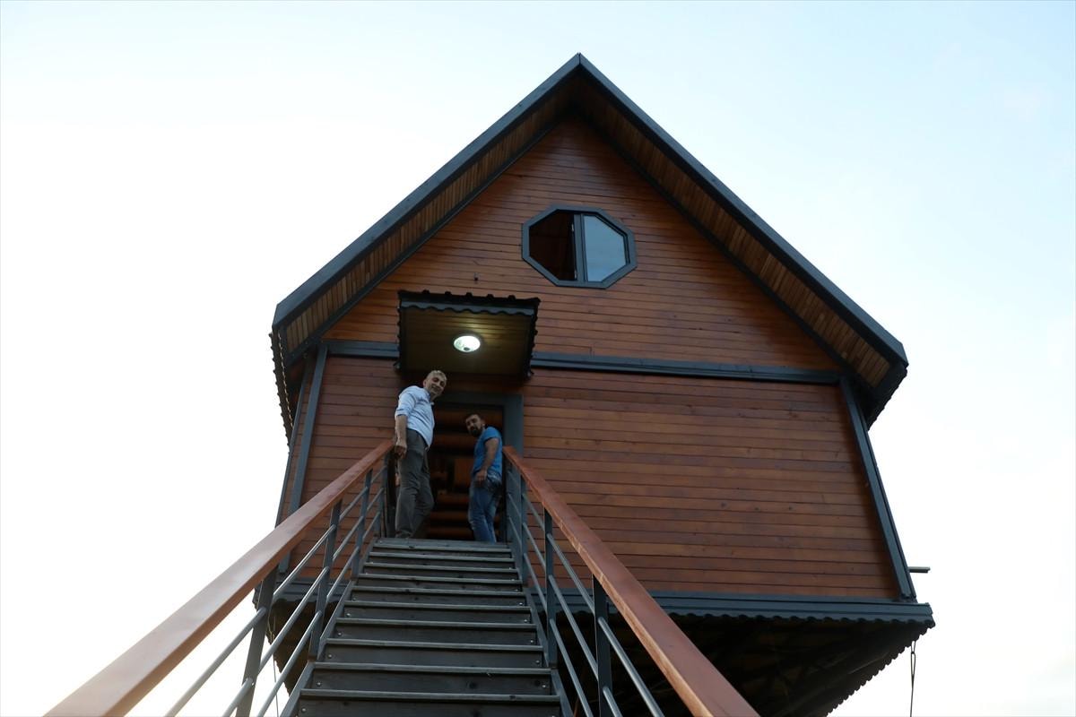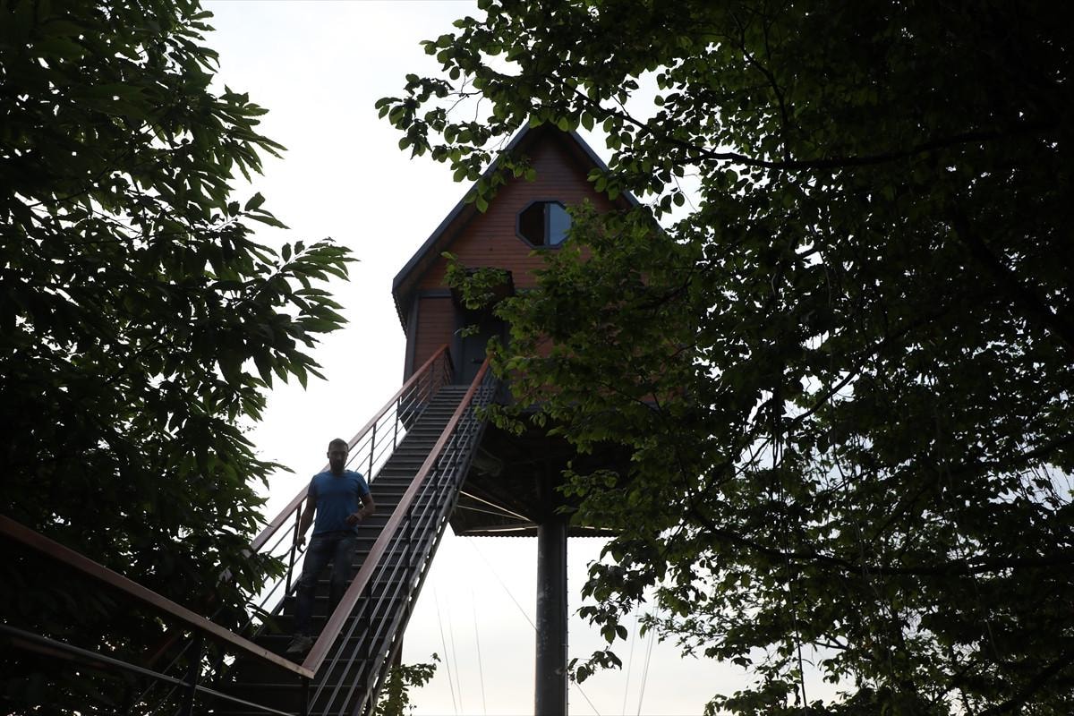 İlginç evlerle ilgili internette araştırma yaptığını anlatan Çelik, "12 metre tek direk üzerine böyle bir yapı yok. Onun vermiş olduğu bir huzur var. Olmayan bir şeyi başarmış oldum." diye konuştu.