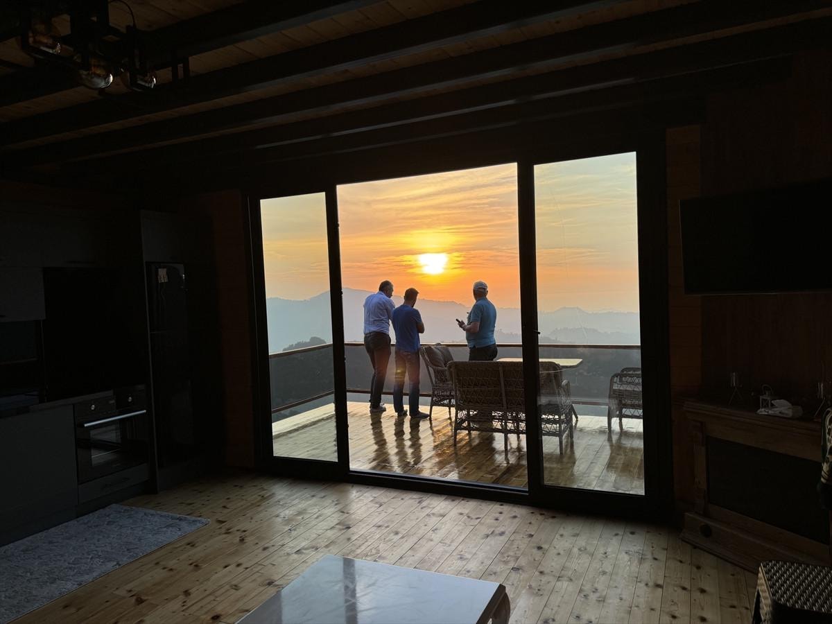 Ev yapılacağını sonradan öğrendik ama ortaya neler çıkacağını bilmiyorduk. Bütün aşamalarını tek tek izledik. Sonuçta böyle bir şaheser ortaya çıktı. Büyük bir mühendislik gerektiren çalışma. Yüksekte, rüzgar, kar var. Oturduğumuz yerde rüzgar olmasına rağmen sallantı yok. Keyfi paha biçilemez.