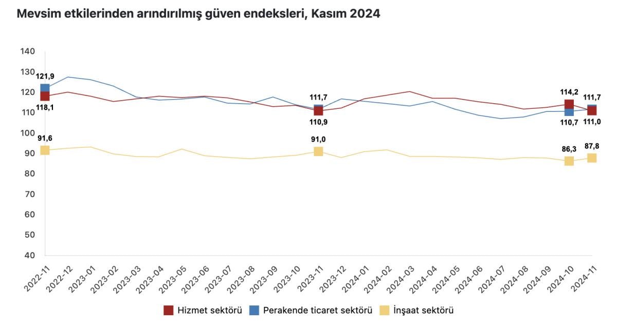 Kasım 2024'e ait Hizmet, Perakende Ticaret ve İnşaat Güven Endeksleri yayınlandı.