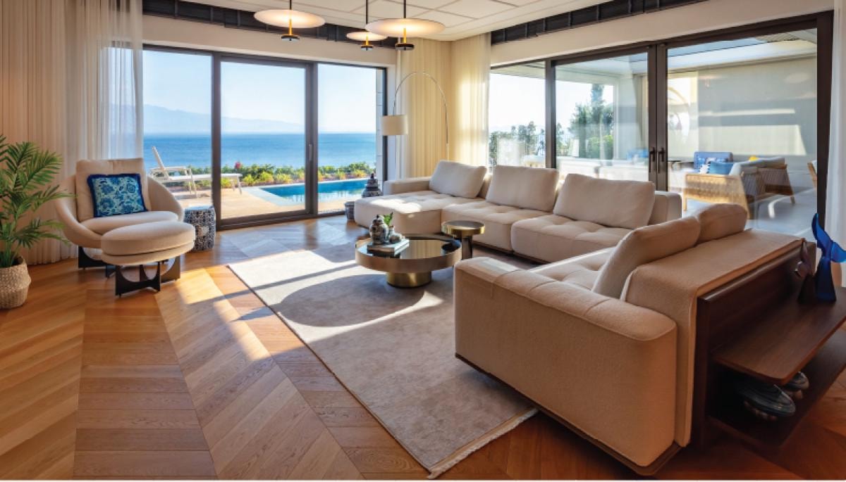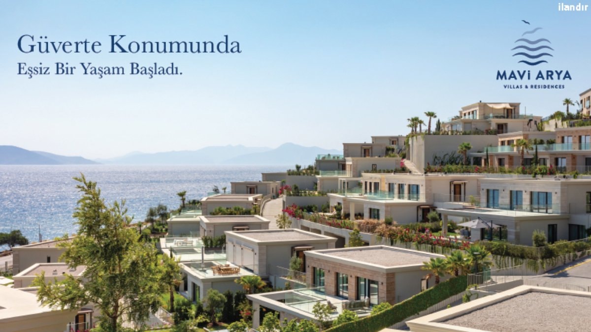 Bodrum Turgutreis’te, üç tarafı denizle çevrili 160.000 m²’lik alanda inşa edilen Mavi Arya, güverte konumunda kesintisiz Ege Denizi manzarası sunuyor. Kos Adası başta olmak üzere komşu Yunan adalarını kucaklayan proje, doğanın ve denizin ruhunu modern Ege mimarisiyle birleştiriyor.