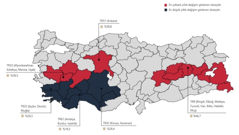 Endeks değerleri bir önceki yılın aynı ayına göre, İstanbul, Ankara ve İzmir’de sırasıyla yüzde 30,7, 38,6 ve 32,5 oranlarında artış gösterdi.