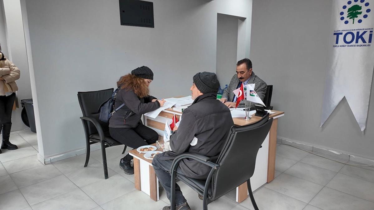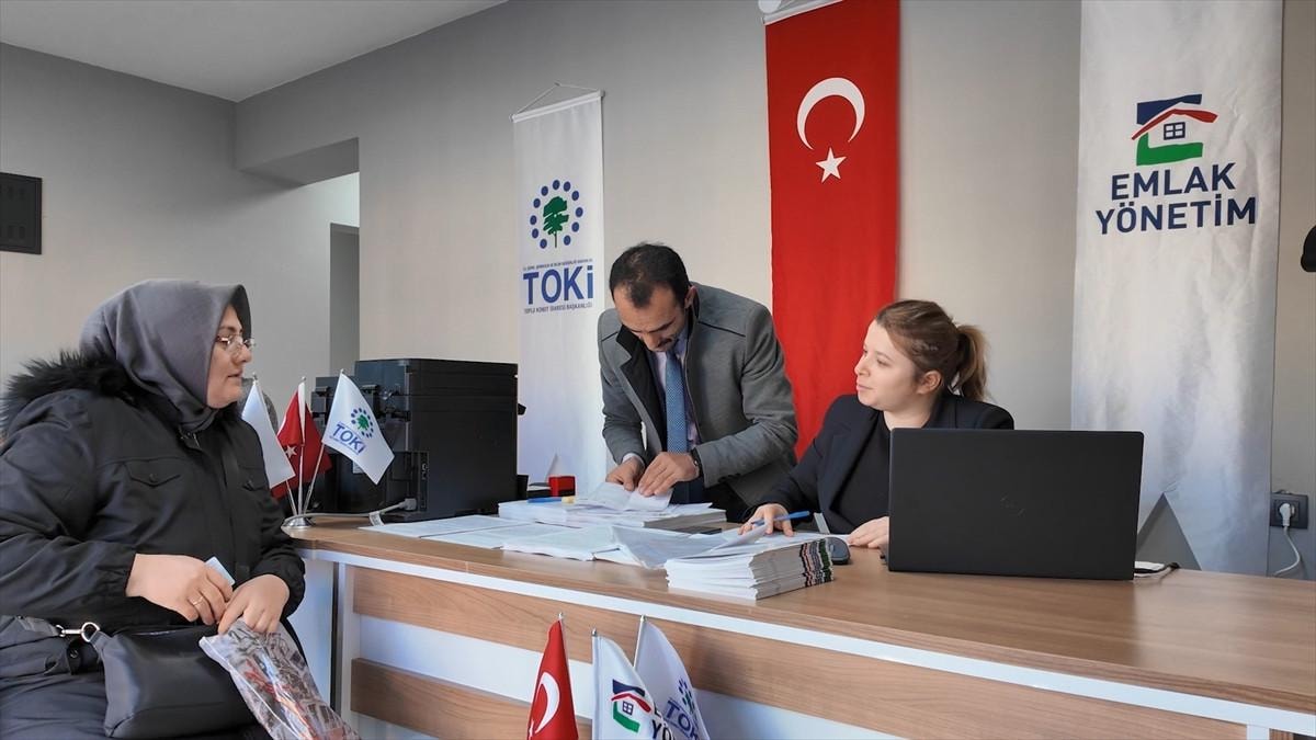 Teslim günleri gelen vatandaşlar, bankadaki işlemlerini tamamladıktan sonra TOKİ konut teslim ofisine uğrayarak yeni konutlarının anahtarlarını teslim aldı.