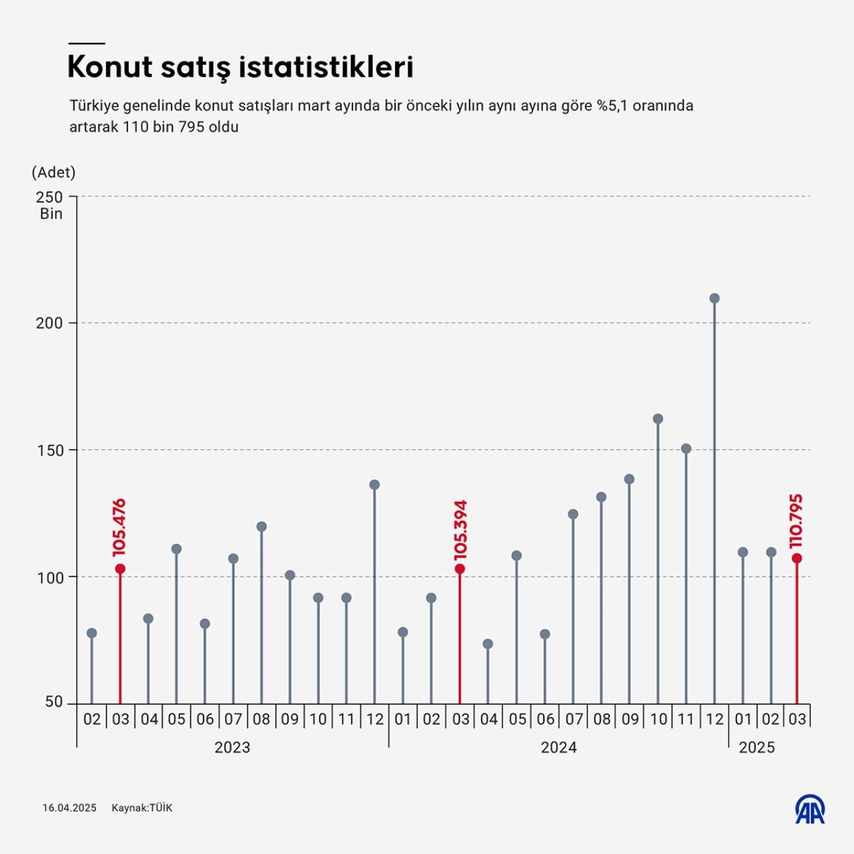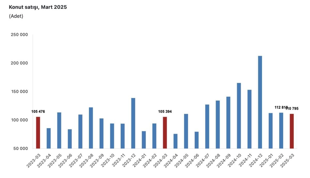 Türkiye İstatistik Kurumu (TÜİK) verilerine göre, mart ayında 110 bin 795 konut satıldı.