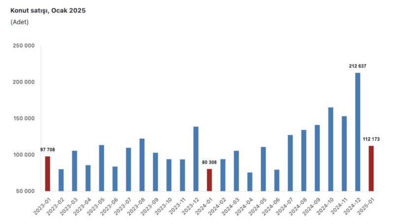 Türkiye İstatistik Kurumu (TÜİK) verilerine göre, Türkiye genelinde konut satışları ocak ayında, bir önceki yılın aynı ayına göre yüzde 39,7 oranında artarak 112 bin 173 oldu.