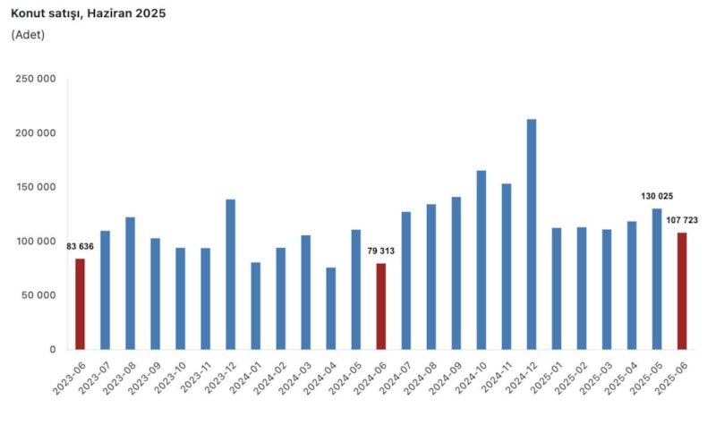 Türkiye genelinde konut satışları haziran ayında, bir önceki yılın aynı ayına göre yüzde 35,8 oranında artarak 107 bin 723 oldu.