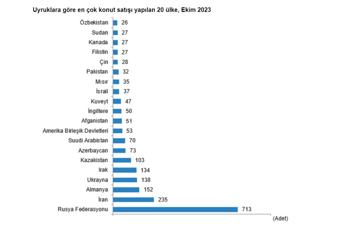 Ülke uyruklarına göre en çok konut satışı Rusya Federasyonu vatandaşlarına yapıldı. Ekim ayında Rusya Federasyonu vatandaşları Türkiye'den 713 konut satın aldı.