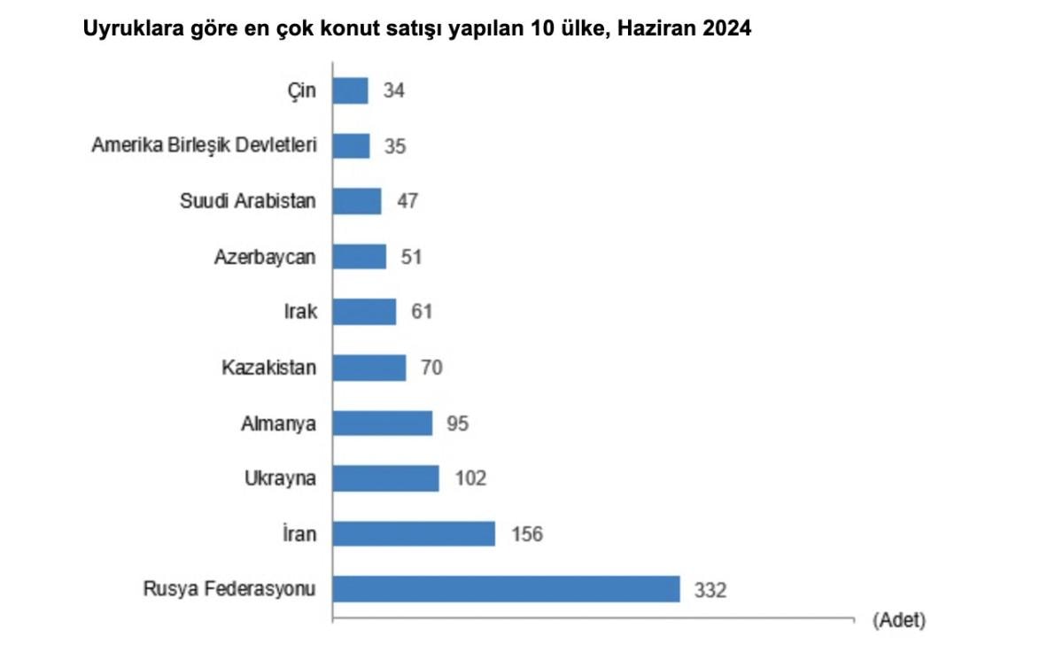 Haziran ayı verilerine göre Türkiye'de ocak-haziran döneminde yabancılara konut satışı, geçen yılın aynı dönemine göre yüzde 45,7 azalıp, 10 bin 461 oldu.