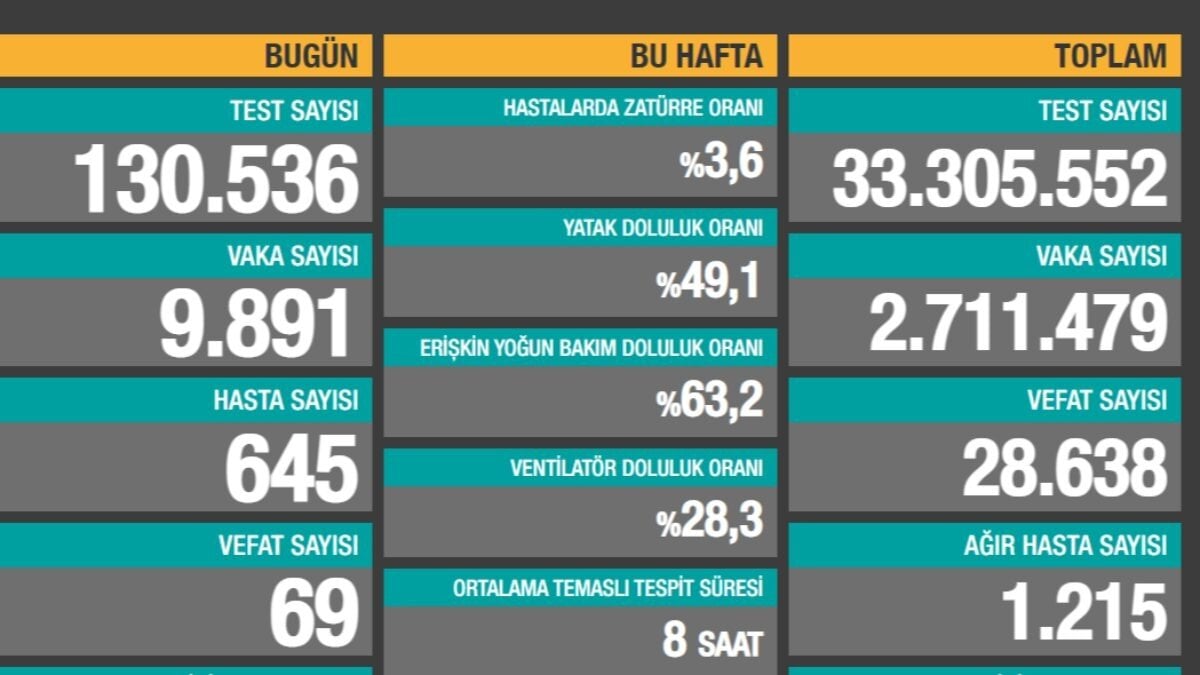 69 vatandaşımızın da salgına yenik düşmesiyle toplam can kaybı 28 bin 638'e yükseldi.