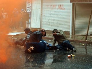 Polis ekipleri, renkli gaz bombası atarak eylemcileri dağıtmak isterken, yerde bir süre bekleyen eylemciler, "Fotoğraf çektiyseniz kalkıyoruz" diye bağırmaları dikkat çekti. Eylemciler daha sonra gaz fişeklerini tekmelediler.