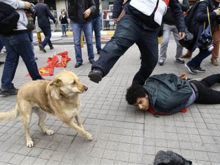 Polis, kelepçeleyip yere yatırdığı bir göstericinin başına gelen sokak köpeğini de ayağıyla uzaklaştırdı. O anlar Anadolu Ajansı objektiflerine böyle yansıdı. Gezi olaylarında da kırmızılı kadın, piyanist ve duran adam gibi eylemlerin sembolü olan bazı figürler öne çıkmıştı.