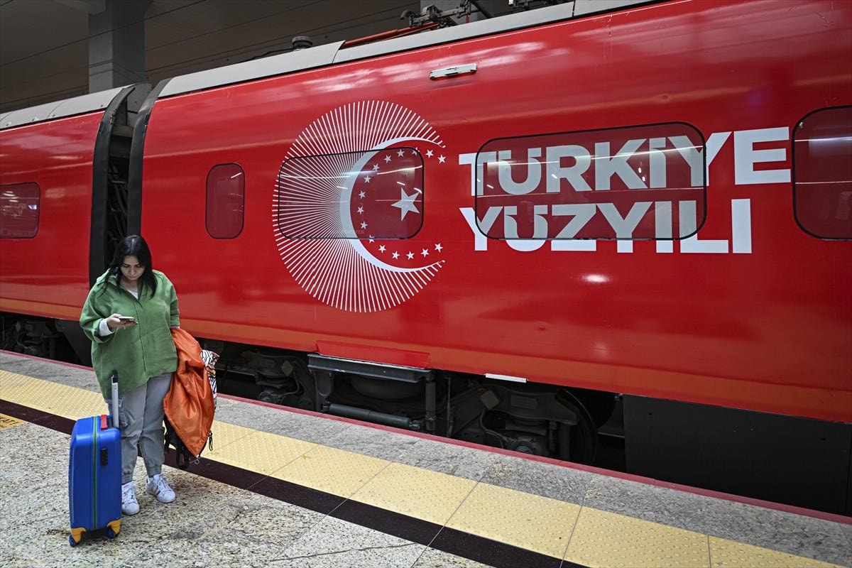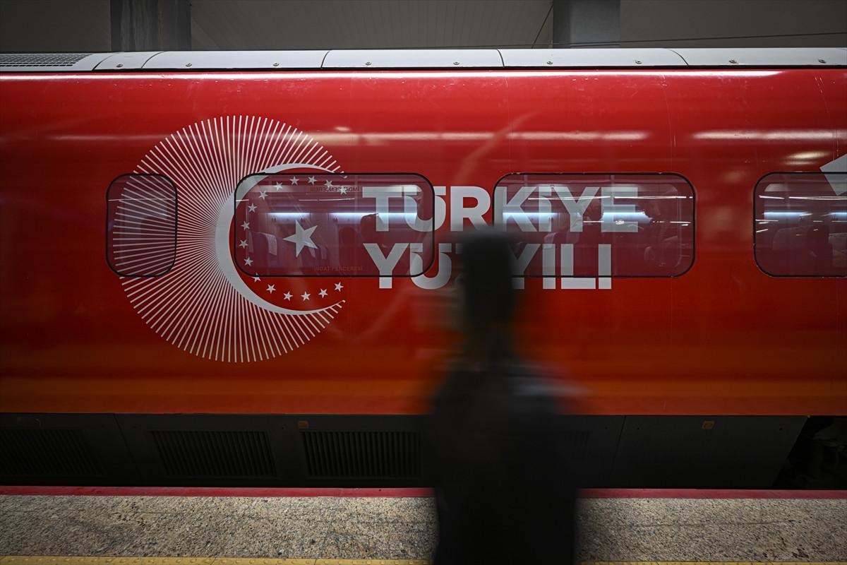 "Türkiye Yüzyılı" ve "Milli Mücadele'nin Yüzüncü Yılı" yazılı görselle kaplanan Yüksek Hızlı Tren (YHT), Ankara Garı'ndan, 409 yolcusuyla, İstanbul'a ilk seferine çıktı.
