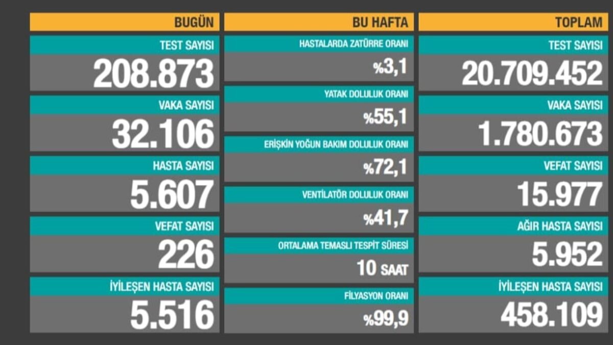 Paylaşılan tabloya göre bugün, 32 bin 106 kişi daha koronavirüse yakalandı.
