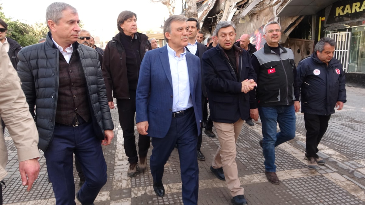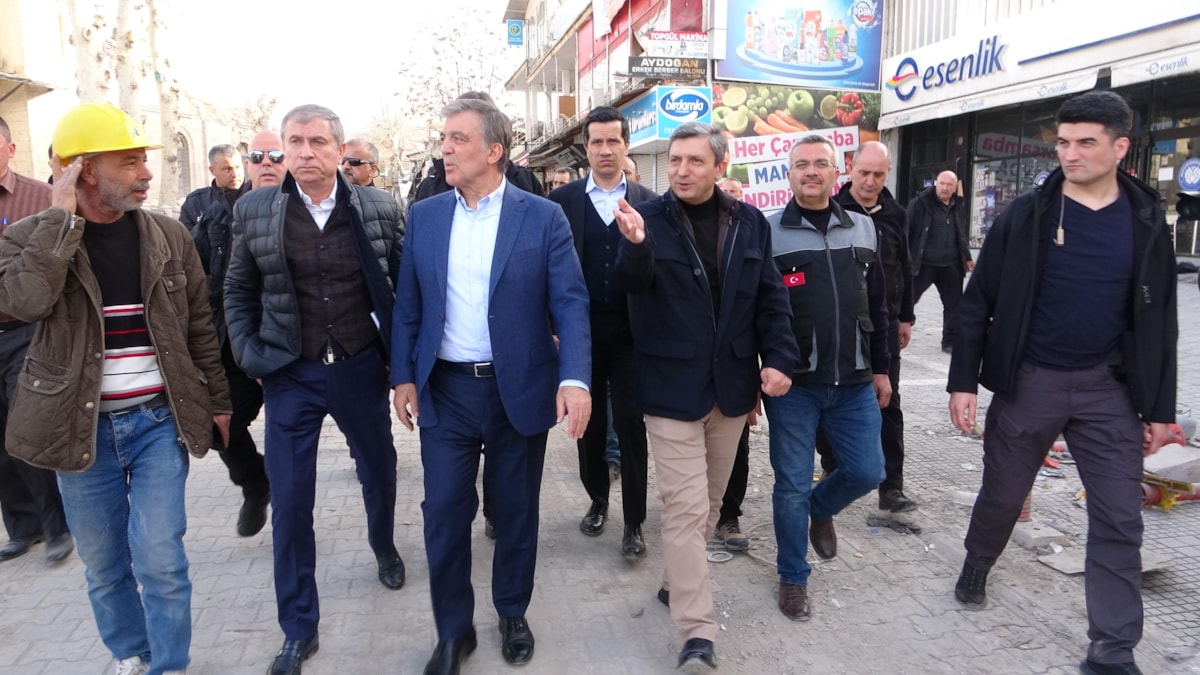 Daha sonra kent merkezinde yıkılan binaların enkazında inceleme yapan Gül, Malatya Büyükşehir Belediyesi binası arkasında kurulan çadır kenti ziyaret ederek, depremzedelerle bir araya geldi.