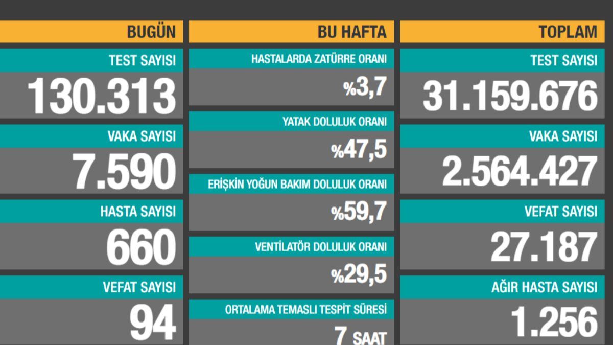 94 vatandaşımızın da salgına yenik düşmesiyle toplam can kaybı 27 bin 187'ye yükseldi.