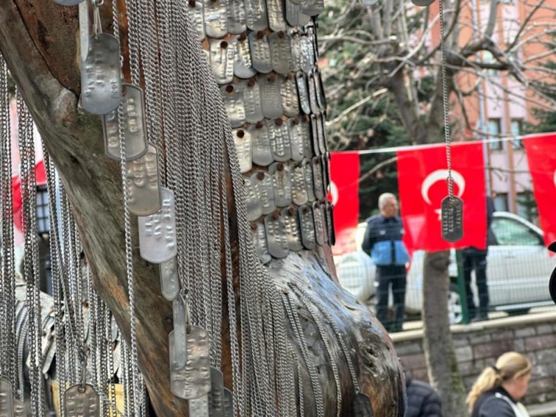 Kuzey Irak'ta şehit olan 12 askerimizin künyeleri, Ankara'nın Kızılcahamam ilçesindeki Şehit Ağacı'na çakıldı.