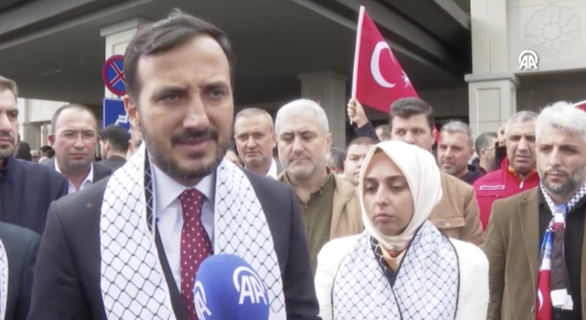 - "Özgür Filistin" sloganları atan aktivistler, AK Parti İstanbul İl Başkanı Abdullah Özdemir tarafından karşılandı.