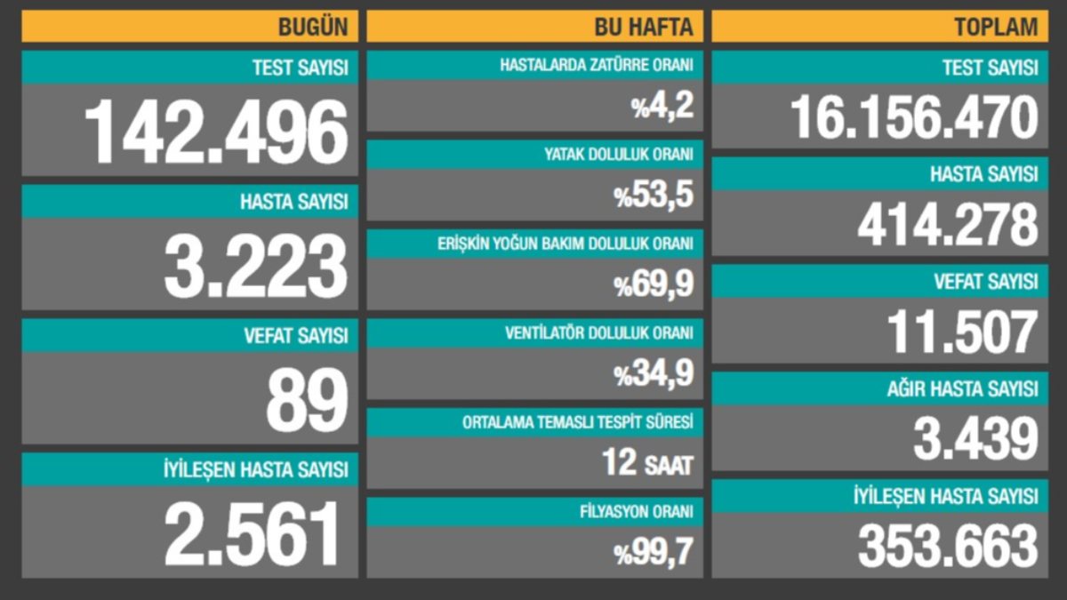Koca'nın açıkladığı verilere göre bugün 3 bin 223 kişi daha hastalığa yakalandı.