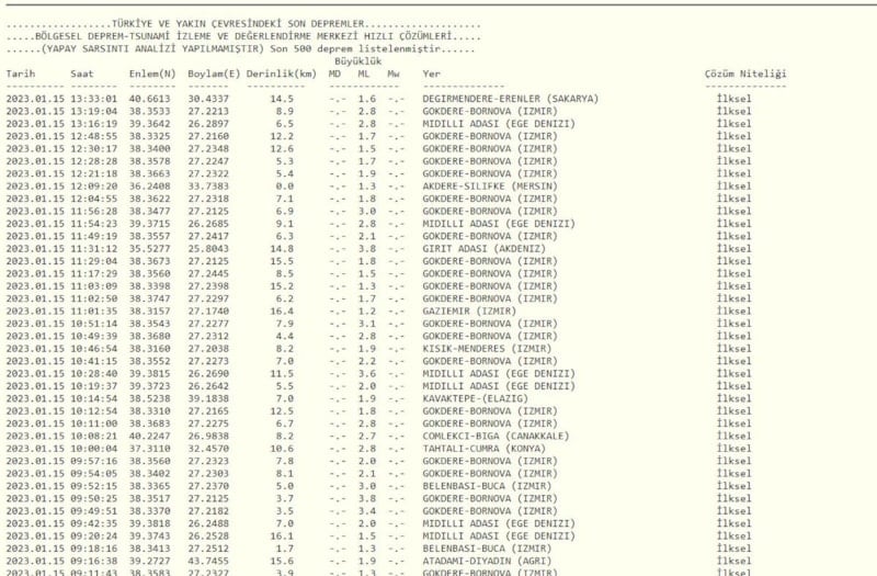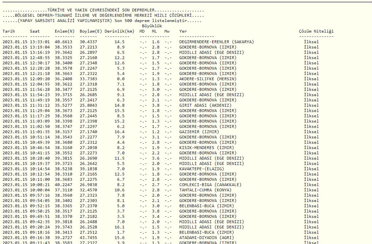 İşte Kandilli Rasathanesi'nin 15 Ocak 2023 deprem verileri: