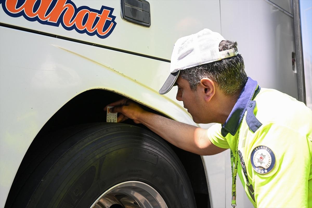 Denetimlerde, emniyet kemeri kullanımı, otobüs lastiklerindeki diş derinliği ve takograf cihazı incelendi.