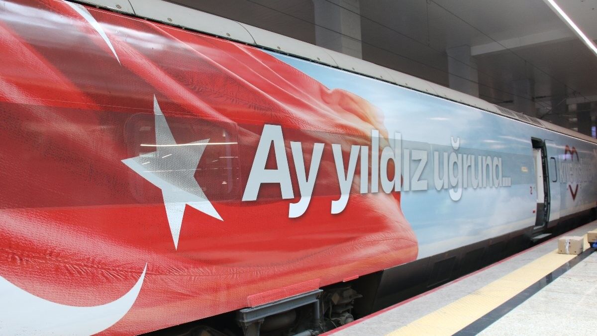 Tren, Ankara'dan İstanbul'a gitmek üzere YHT Garı'ndan hareket etti. Trenin üzerinde "Ay yıldız uğruna... Türkiye aşkına" ifadelerine yer verildi.