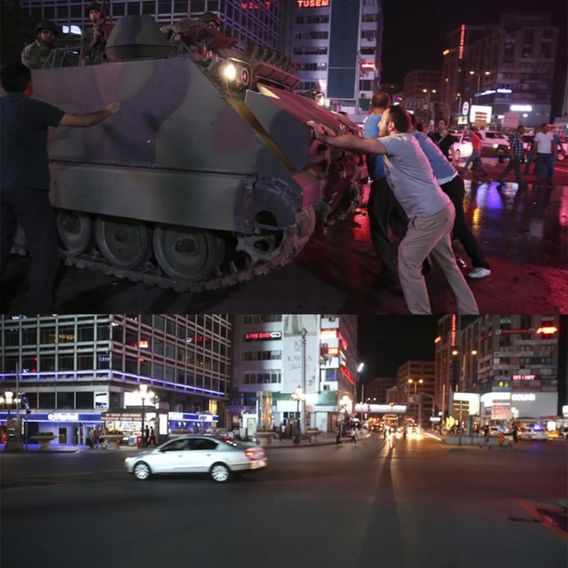 Cumhurbaşkanı Recep Tayyip Erdoğan'ın çağrısı üzerine yurdun birçok yerinde sokağa çıkan binlerce vatandaş, tankların altına yattı ve darbecilerin ilerlemesine engel oldu.
