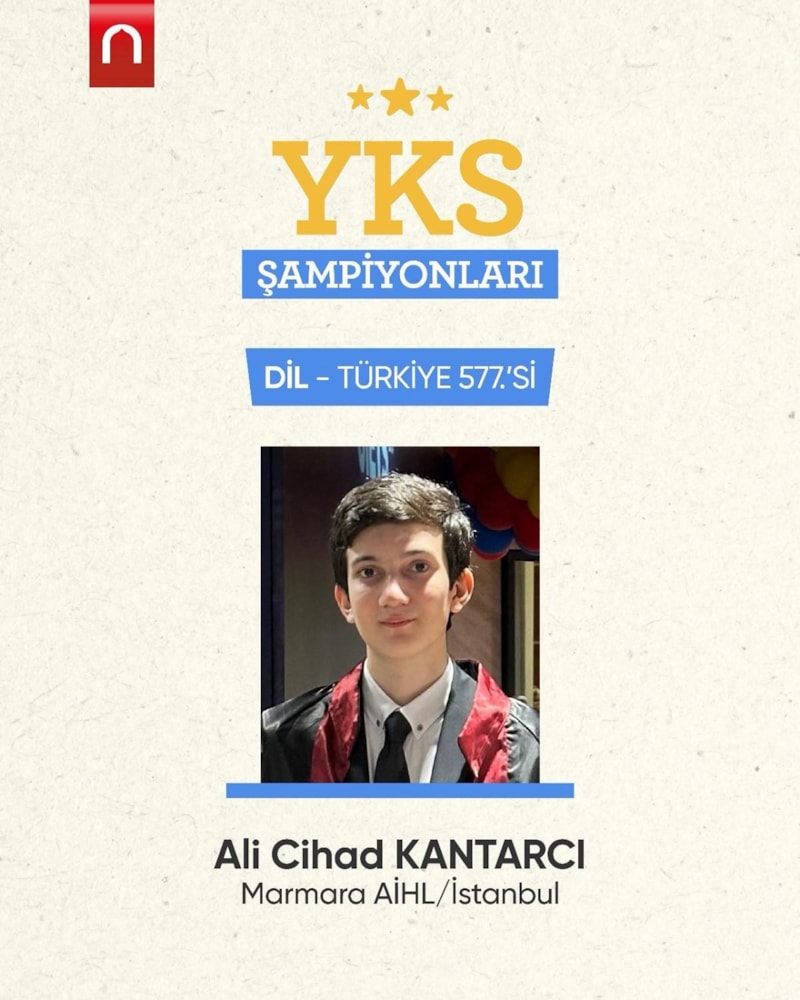 Sınavda büyük başarıya imza atan Marmara Anadolu İmamhatip öğrencisi Ali Cihad Kantarcı'nın YKS Dil sınavında Türkiye 577’ncisi olduğu öğrenildi.