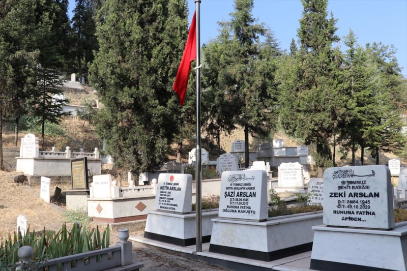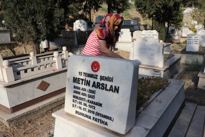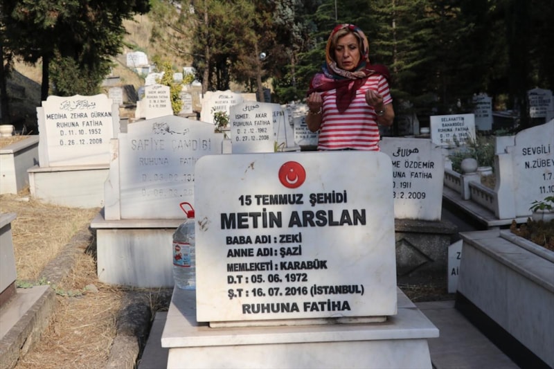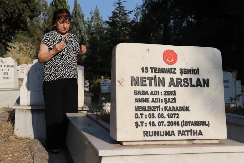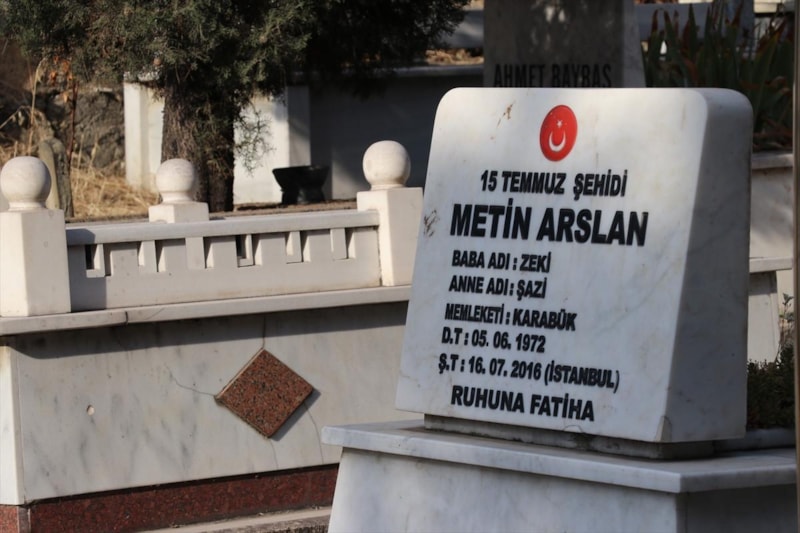 Kız kardeşler, taşlarında "15 Temmuz şehidi Metin Arslan", "15 Temmuz şehidi Metin Arslan'ın annesi" ve "15 Temmuz şehidi Metin Arslan'ın babası" yazan Öğlebeli Mezarlığı'ndaki kabirlere sık sık giderek çiçekleri suluyor.