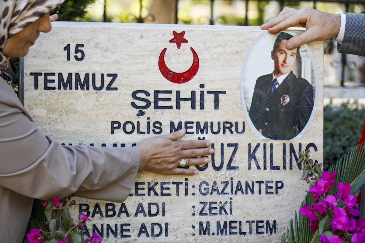 FETÖ elebaşı Fetullah Gülen'in ölüm haberini alan Kılınç çifti, Uncalı Şehitliği'ne geldi.