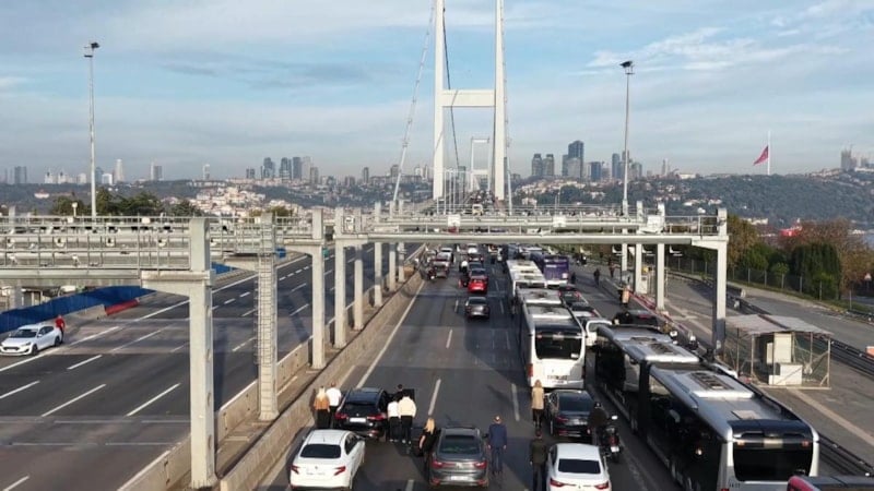 15 Temmuz Şehitler Köprüsü Anadolu'dan Avrupa Yakası'na geçiş yönünde, polis ekipleri tarafından trafik durduruldu.
