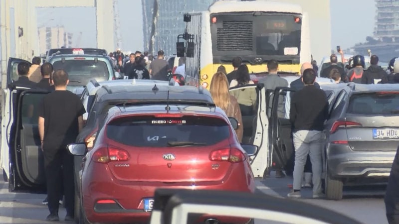 Saat 09.05'i gösterdiğinde köprü girişinde sürücüler araçlarından indi.