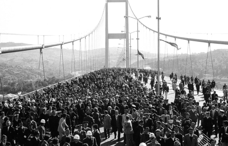 Megakent'in iki yakasını birbirine bağlayan ilk köprü olan ve yapımı öncesinde büyük tartışmalar yaşanan Boğaziçi Köprüsü, tamamlanmasının ardından Cumhuriyet'in 50. yıl dönümünde, 29 Ekim'den bir gün sonra, 30 Ekim 1973'te dönemin Cumhurbaşkanı Fahri Korutürk tarafından açıldı.