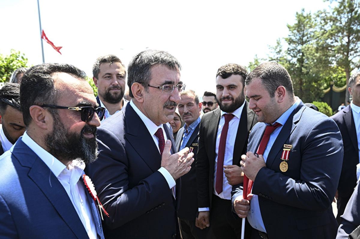 Cumhurbaşkanı Yardımcısı Cevdet Yılmaz, 15 Temmuz Demokrasi ve Milli Birlik Günü etkinlikleri kapsamında, Cumhurbaşkanlığı Külliyesi'nin karşısındaki alanda düzenlenen törene katıldı.