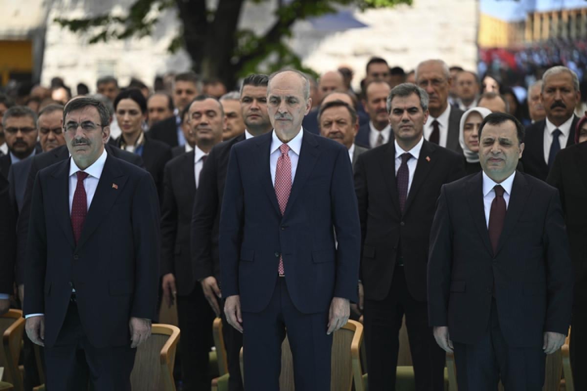 Törende TBMM Başkanı Numan Kurtulmuş ve Cumhurbaşkanı Yardımcısı Cevdet Yılmaz 15 Temmuz Şehitler Anıtı'na karanfil bıraktı. Kuran'ı Kerim tilaveti ile devam eden törende, Diyanet İşleri Bakanı Ali Erbaş dua okudu.