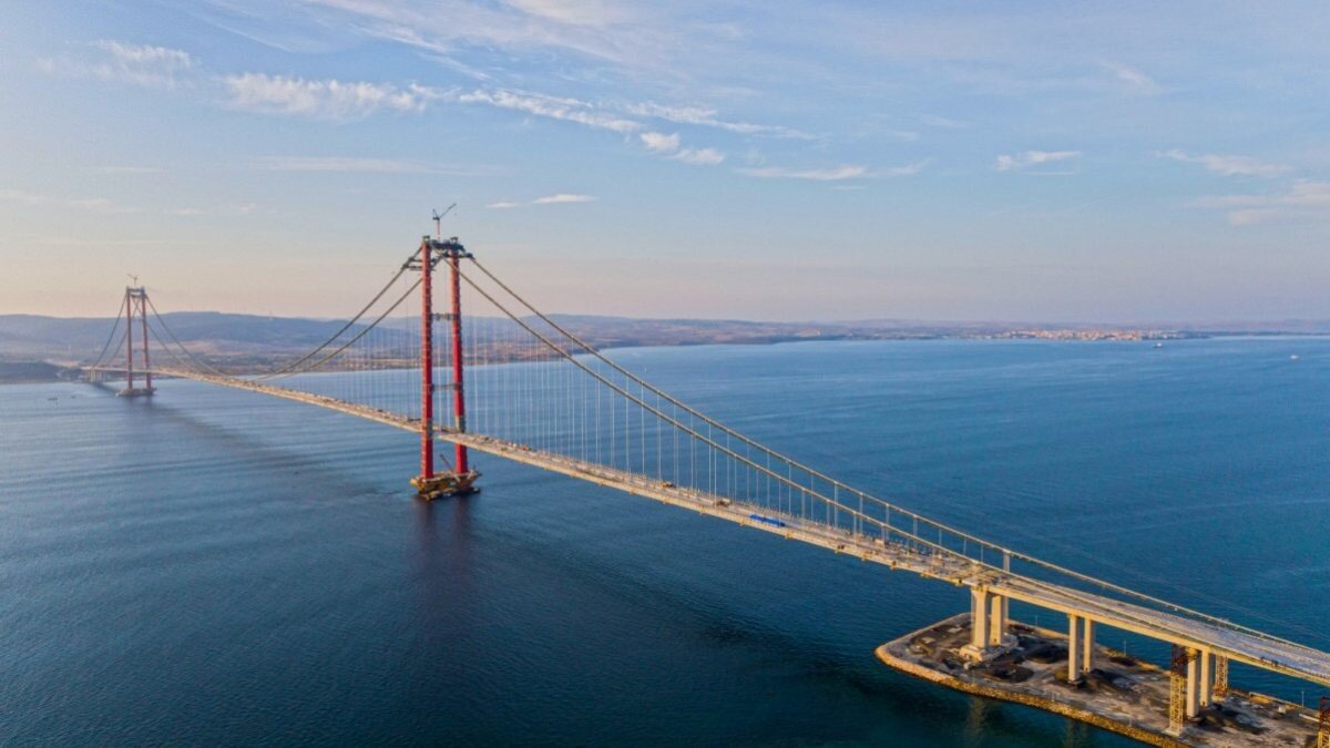 Çanakkale Boğazı'nda Avrupa ve Asya kıtalarını ilk kez birbirine bağlayacak olan, 2023 metrelik orta açıklığıyla 'dünyanın en uzun orta açıklıklı asma köprüsü' unvanını alacak 1915 Çanakkale Köprüsü'nde çalışmalar aralıksız sürüyor.