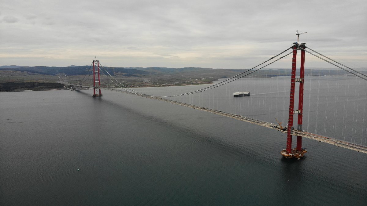 Tamamlandığında 'dünyanın en büyük orta açıklığına sahip asma köprüsü' unvanına kavuşacak olan 1915 Çanakkale Köprüsü’nde son rötuşlar yapılıyor.