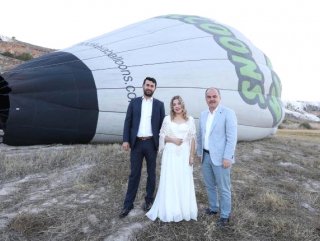 Farklı bir ortamda dünyaevine giren çift, nikahın ardından gökyüzünde Türk bayrağı açıp, hatıra fotoğrafı çektirdi. Sıra dışı bir nikah kıyan Başkan Gürlesin, "İlçemizin turizminin gelişmesi noktasında başlatılan balon turlarında ilk nikahımızı kıydık. Gençlerimizin nikahlarını gökyüzünde kıymak bizim için de farklı bir tecrübe ve heyecan oldu" dedi.