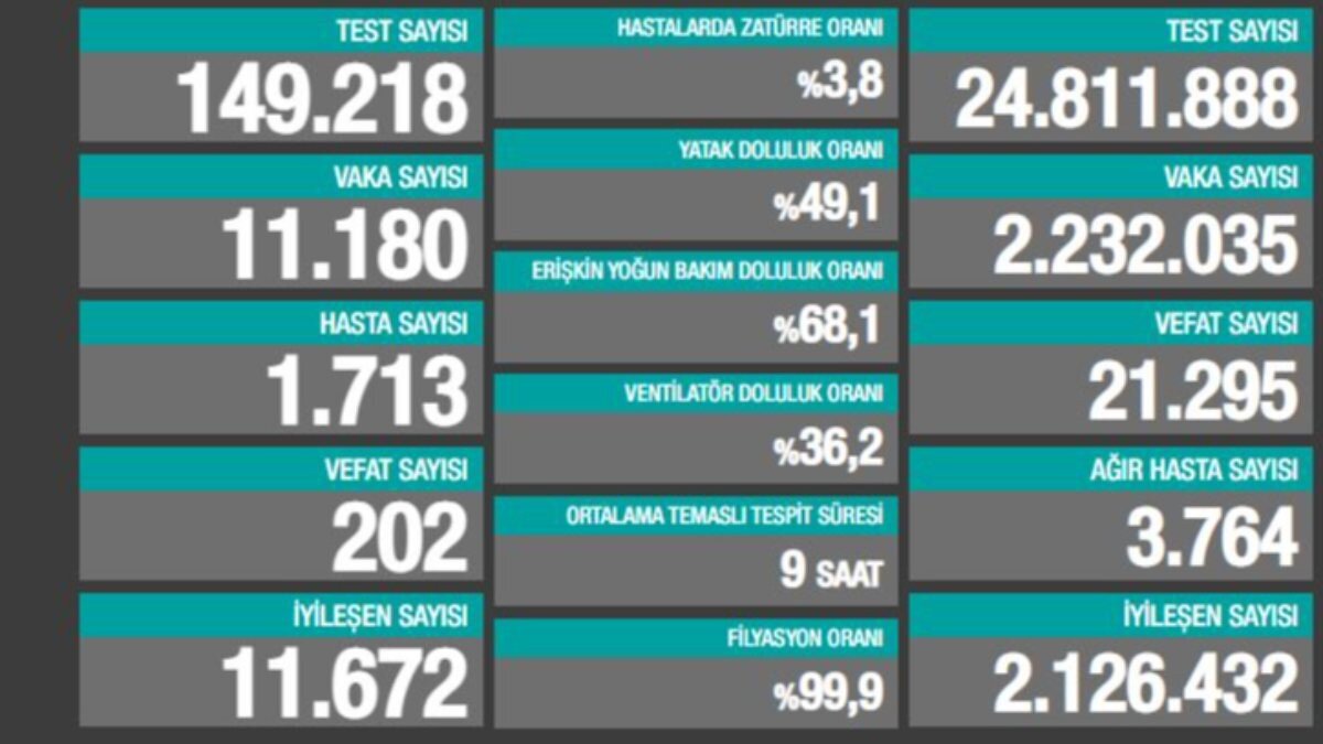 Bugün 11 bin 180 vaka tespit edildi.