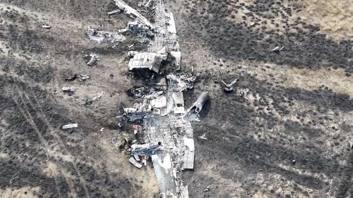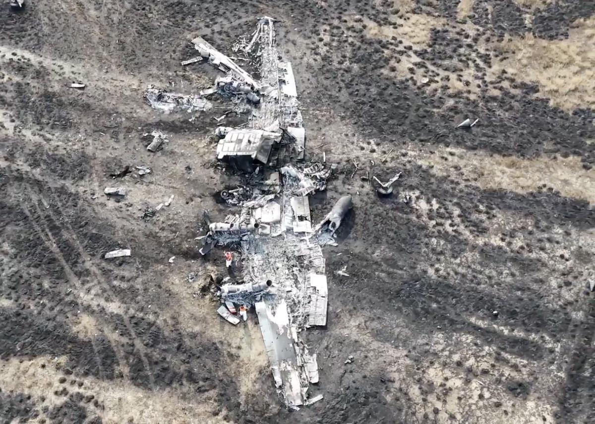 Drone kamerasına yansıyan görüntülerde düşen uçağın enkazı ve kazanın boyutu gözler önüne serildi.