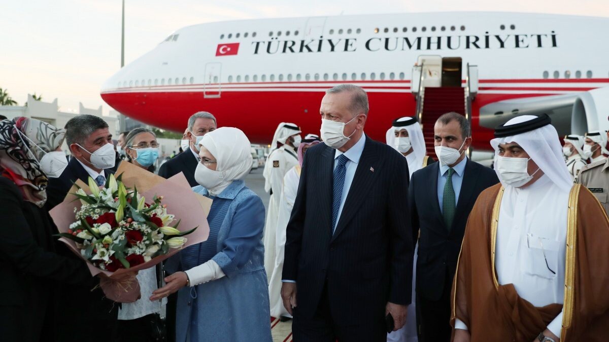 Cumhurbaşkanı Erdoğan; Hamad Uluslararası Havaalanı'nda Dışişleri Bakanı Mevlüt Çavuşoğlu, Milli Savunma Bakanı Hulusi Akar, Katar Maliye Bakanı Ali bin Ahmed Alkuwari, MİT Başkanı Hakan Fidan, Türkiye'nin Doha Büyükelçisi Mehmet Mustafa Göksu ve Katar-Türk Birleşik Müşterek Kuvvet Komutanı Piyade Kurmay Albay Bilal Çokay tarafından karşılandı.