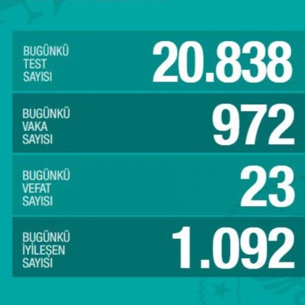 Bugün yapılan test sonucunda ise 972 yeni vaka tespit edildi.