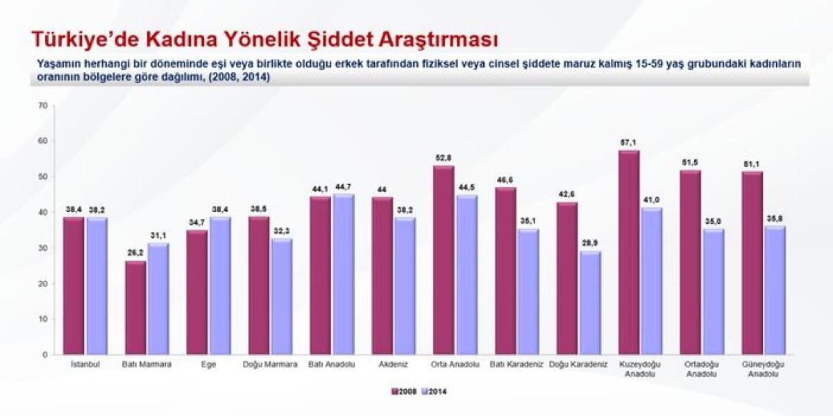 Öte yandan 2014 yılında, yüzde 44,5'lik oranla en yüksek fiziksel veya cinsel şiddet mağduru kadının Orta Anadolu'da yer aldığı bildirildi.