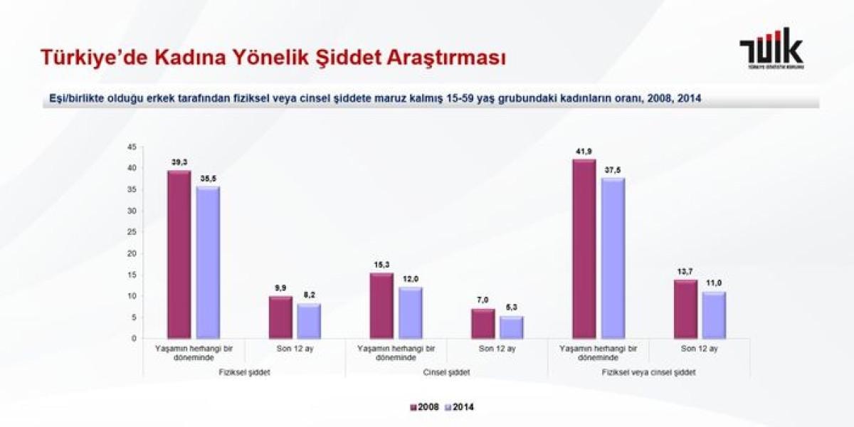 Cinsel şiddet oranı ise 2008 yılında yüzde 15,3 iken 2014 yılında 12,0 oldu. Fiziksel veya cinsel şiddet olarak ele alındığında da oranın 2008 yılında yüzde 41,9 iken 2014 yılında 37,5 olduğu kaydedildi.
