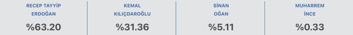 Tokat'ta Cumhurbaşkanlığı seçimlerinde Recep Tayyip Erdoğan yüzde 63 oy alırken Kemal Kılıçdaroğlu ise yüzde 31'de kaldı.