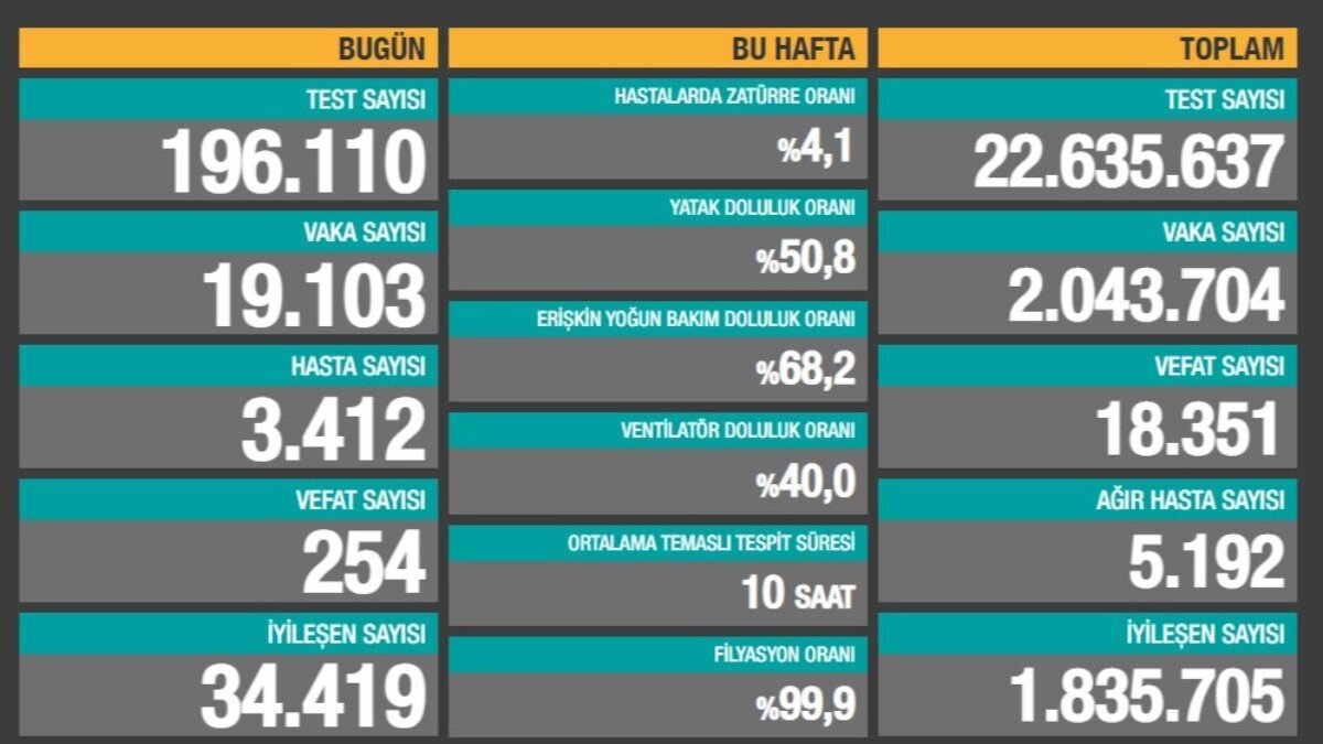 Tedavi altındaki 34 bin 419 kişi ise sağlığına kavuşarak taburcu oldu.