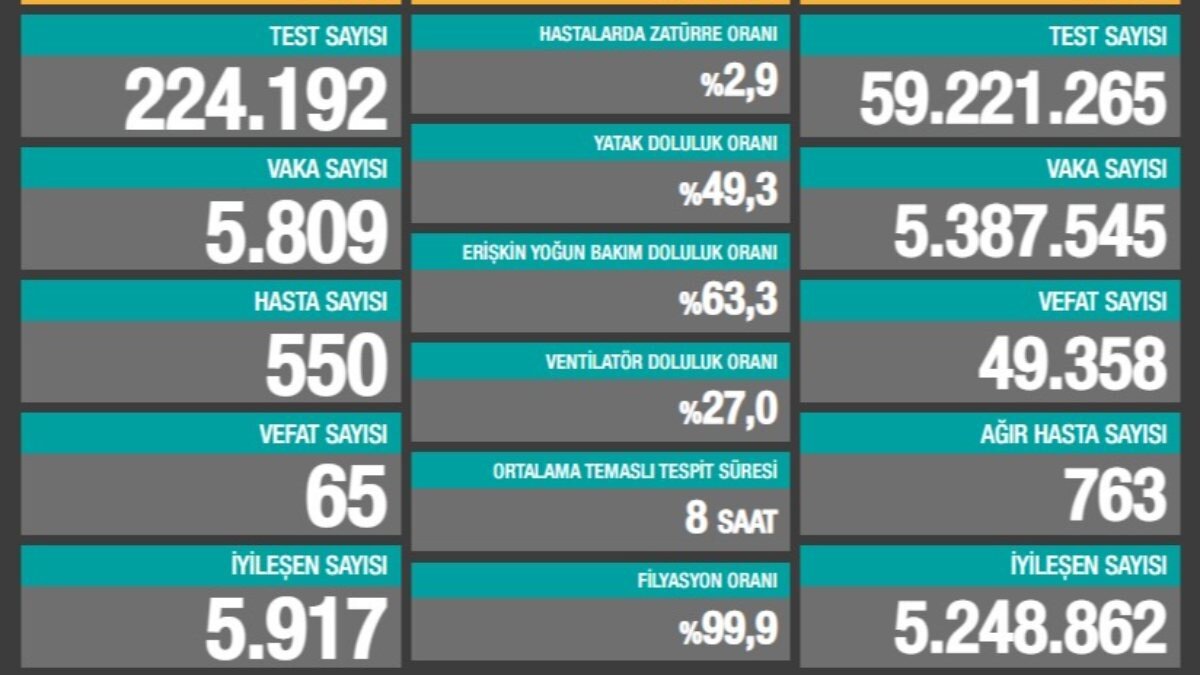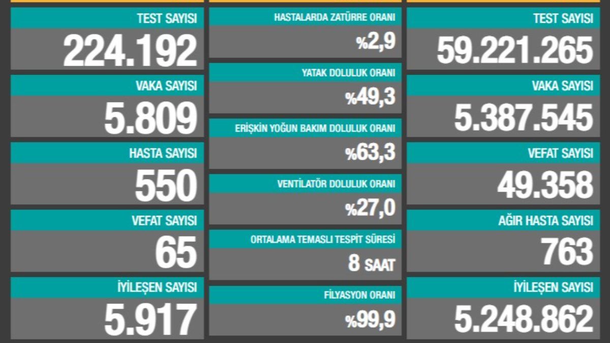 Paylaşılan tabloya göre bugün yapılan testler sonucu 5 bin 809 yeni vaka tespit edildi.
